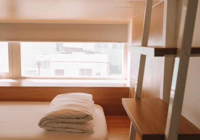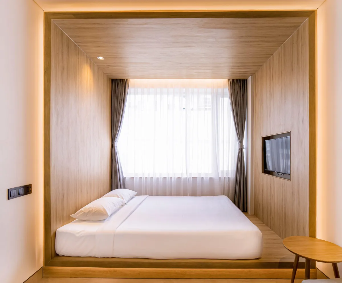 Our classic studio private room, ideal for couple travellers. With a minimalist design boasting warm wooden hues, it offers affordability and comfort in one package. Ideal for those seeking a cozy yet wallet-friendly stay.